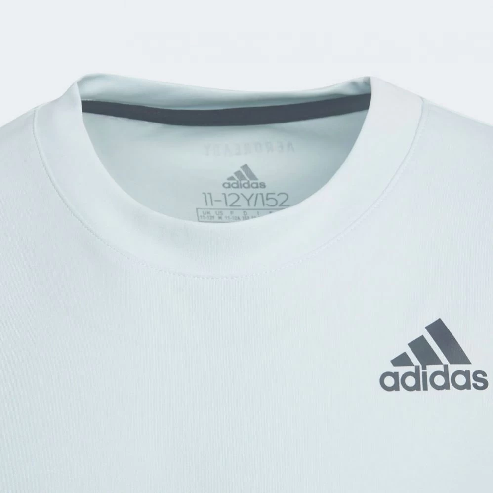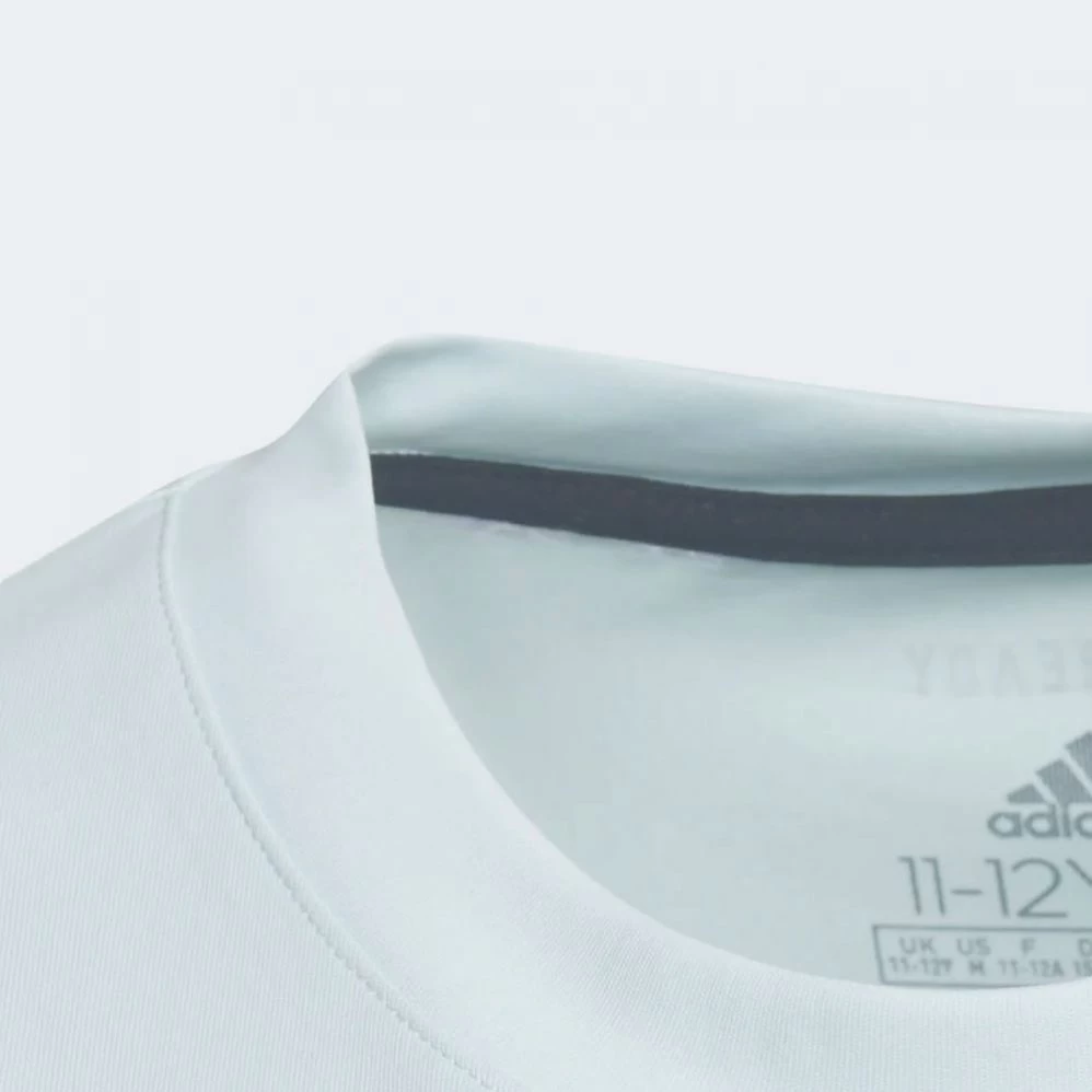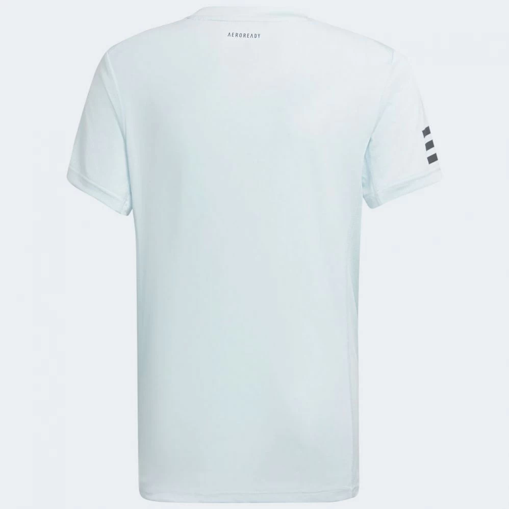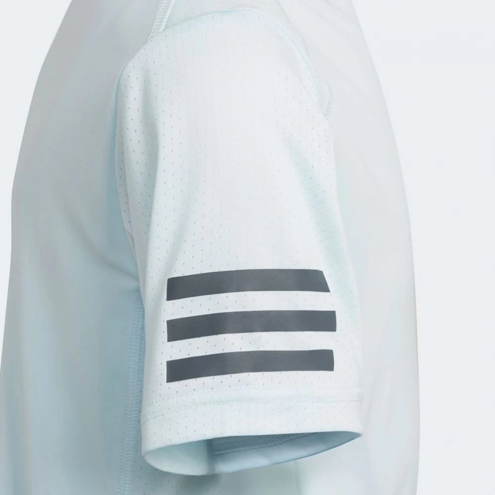 Le t shirt Adidas Junior Club 3 Stripes bleu clair en détail