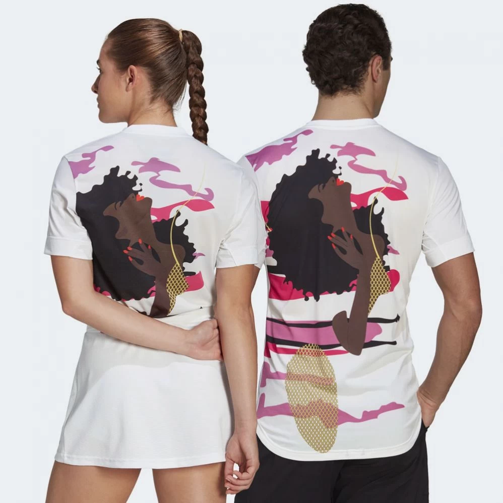 Ce haut de tennis pour homme fait parti de la collection adidas pour les tournois les plus prestigieux d’AmĂ©rique du Nord. RĂ©alisĂ© avec la marque de mode Thebe Magugu, il arbore un large imprimĂ© dans le dos, reprĂ©sentant une femme qui danse avec optimisme.